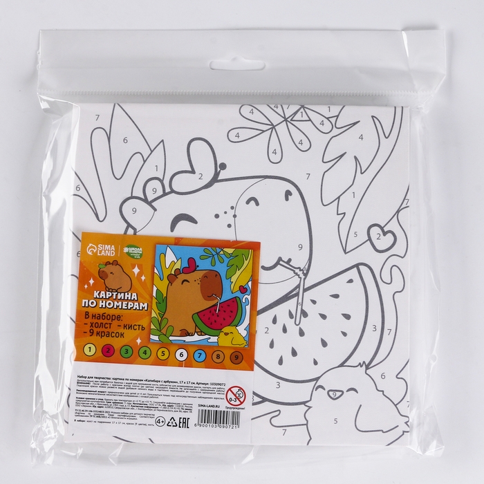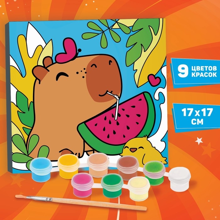 Картина по номерам для детей «Капибара с арбузом», 17х17 см