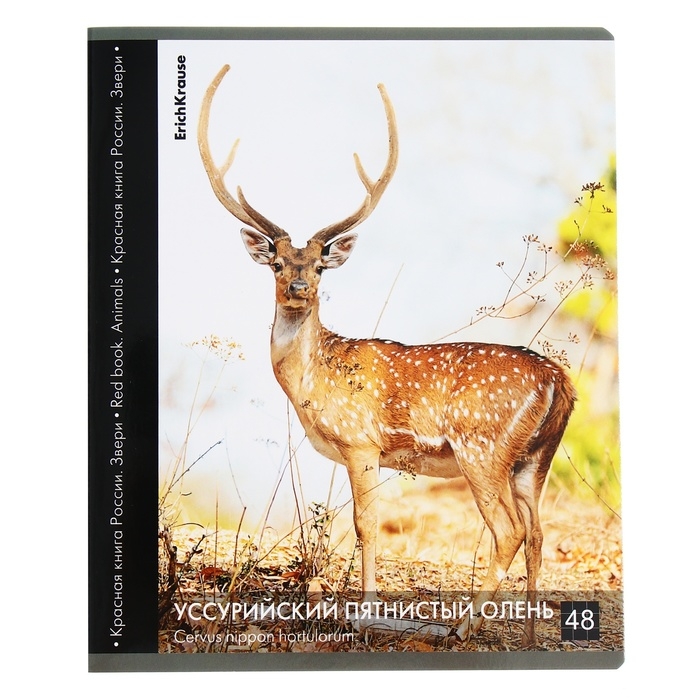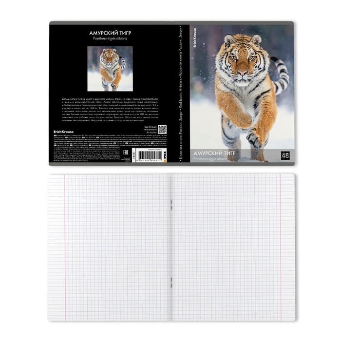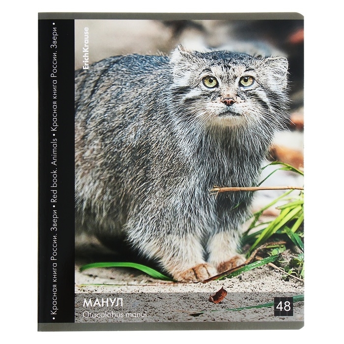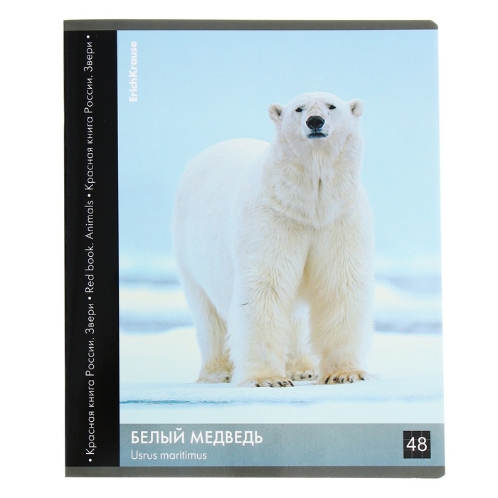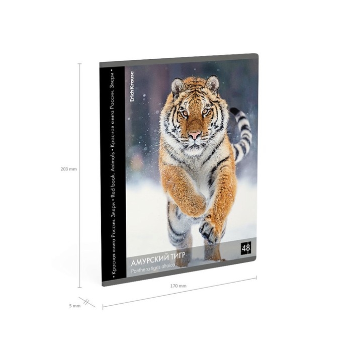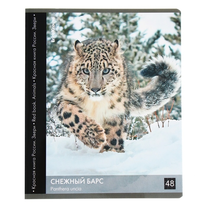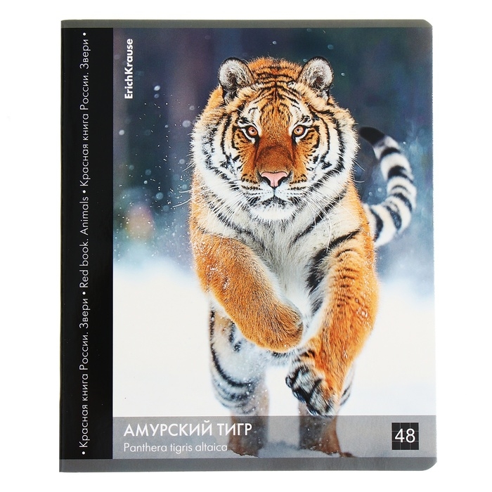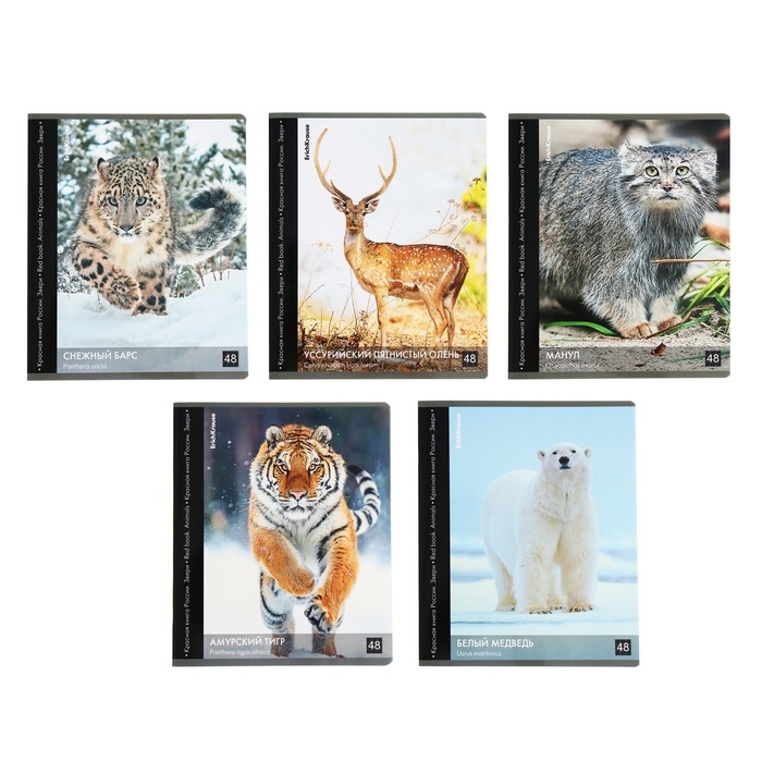 Тетрадь 48 листов в клетку, ErichKrause "Красная книга России. Звери.", обложка мелованный картон, глянцевая ламинация, блок офсет 100% белизна, МИКС