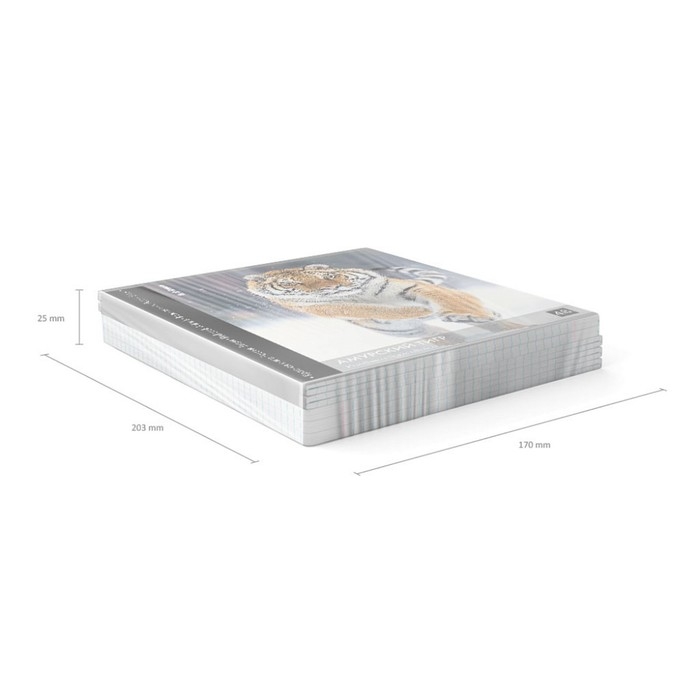 Тетрадь общая ученическая формата А5+ (170х203 мм). Обложка из высококачественного мелованного картона плотностью 190 г/м2. В блоке 48 листов в клетку с полями. Бумага офсетная плотностью 60 г/м2. Цвет линовки - синий. Скругленные уголки обложки и блока. Тип скрепления - скоба. Тетради разного дизайна упакованы в термоусадочную пленку по 5 штук.