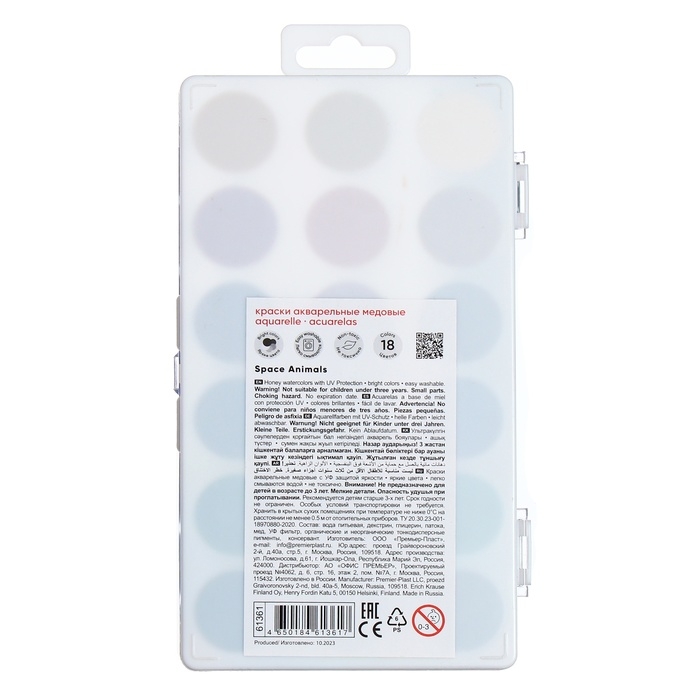 Акварель 18 цветов, ErichKrause Kids Space Animals, медовая, с УФ защитой яркости, пластиковая коробка, европодвес