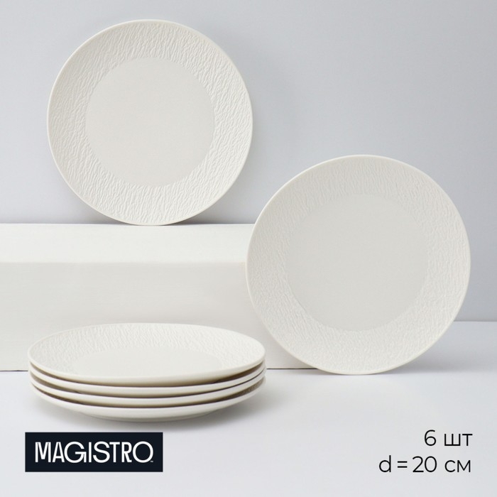 Набор тарелок фарфоровых десертных Magistro Lofty, 6 предметов: d=20 см, цвет белый