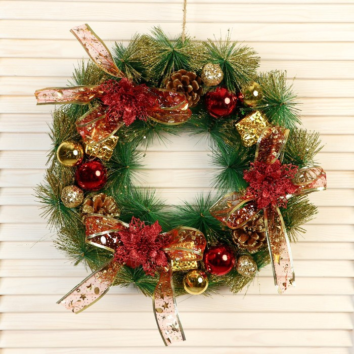 Венок новогодний d-40 см "Клетчатые бантики"