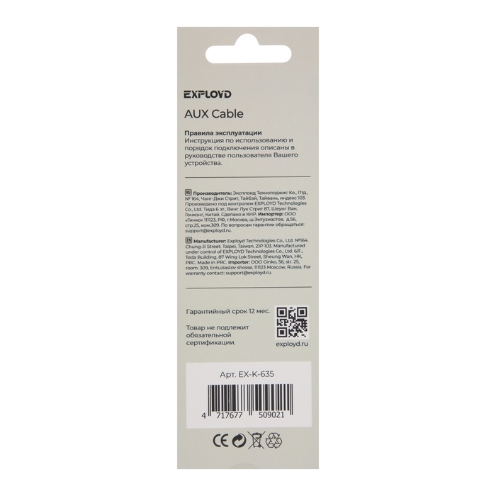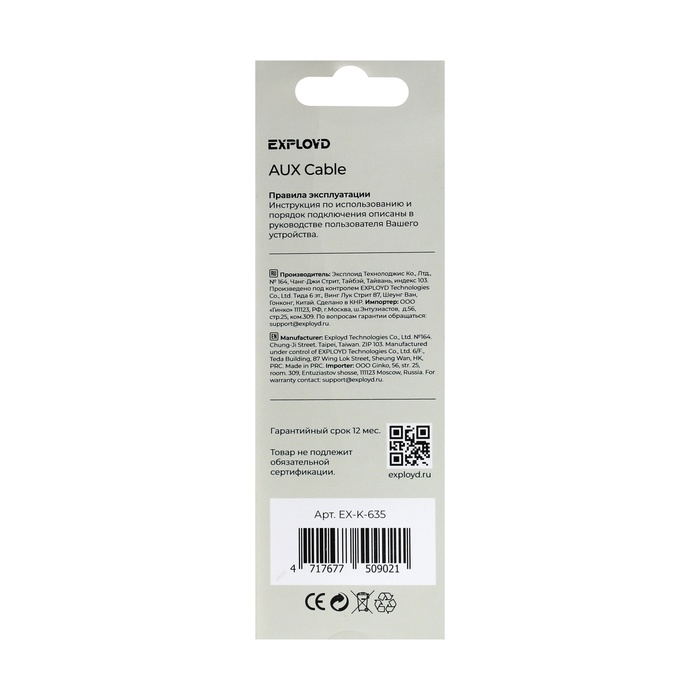 Кабель Exployd EX-K-635 Jack 3.5(м) - Jack 3.5(м), для микро и наушников, 2 м, черный