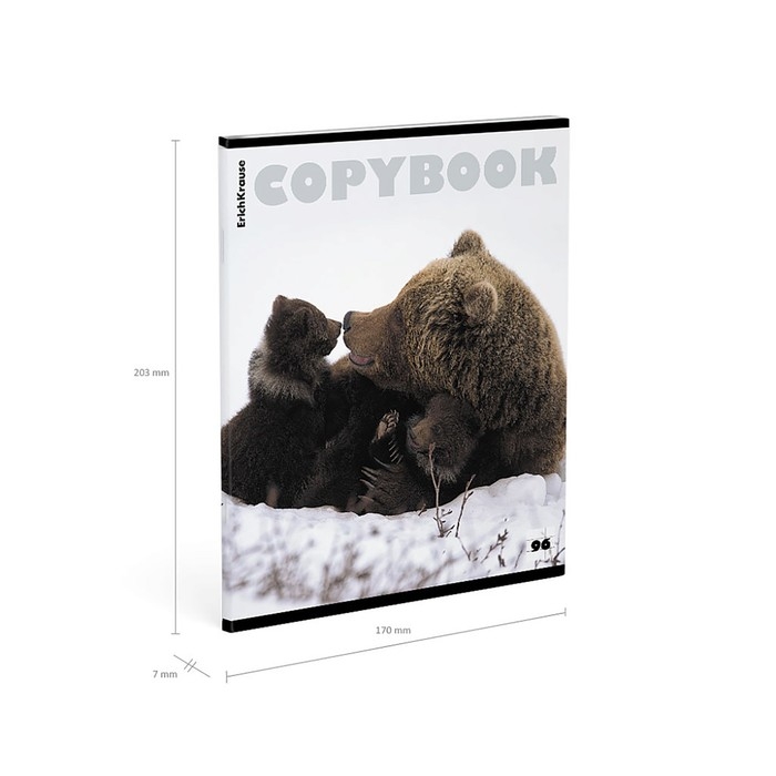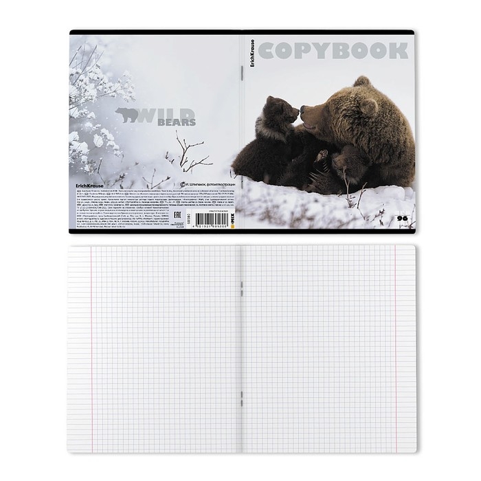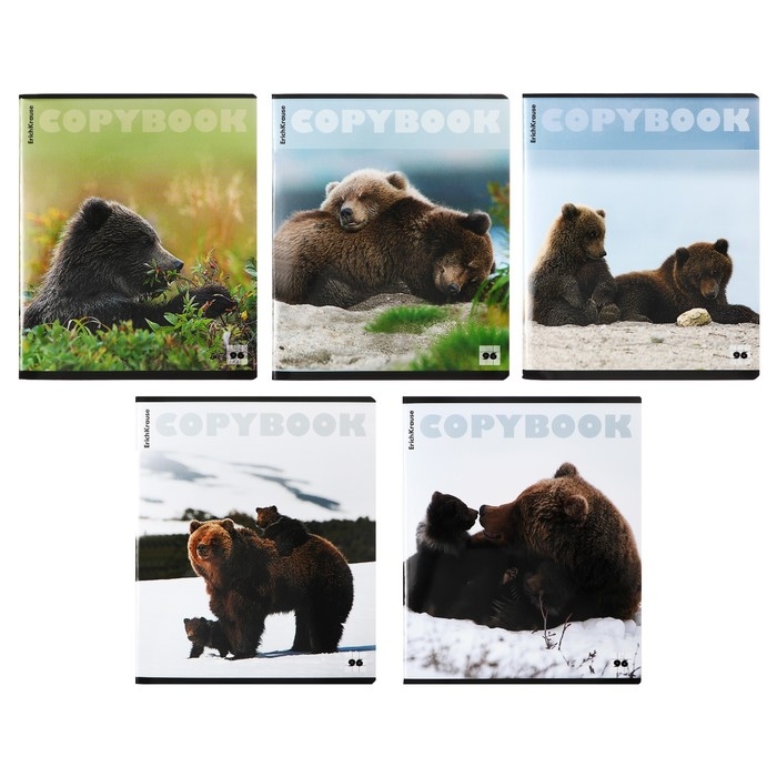 Тетрадь 96 листов в клетку, ErichKrause "Медведи", обложка мелованный картон, глянцевая ламинация, блок офсет 100% белизна, МИКС