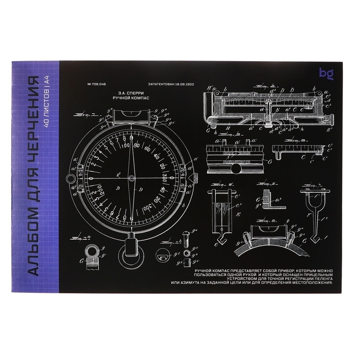 Альбом для черчения А4 40 листов на клею "Компас", обложка мелованный картон ,блок 160г/м2