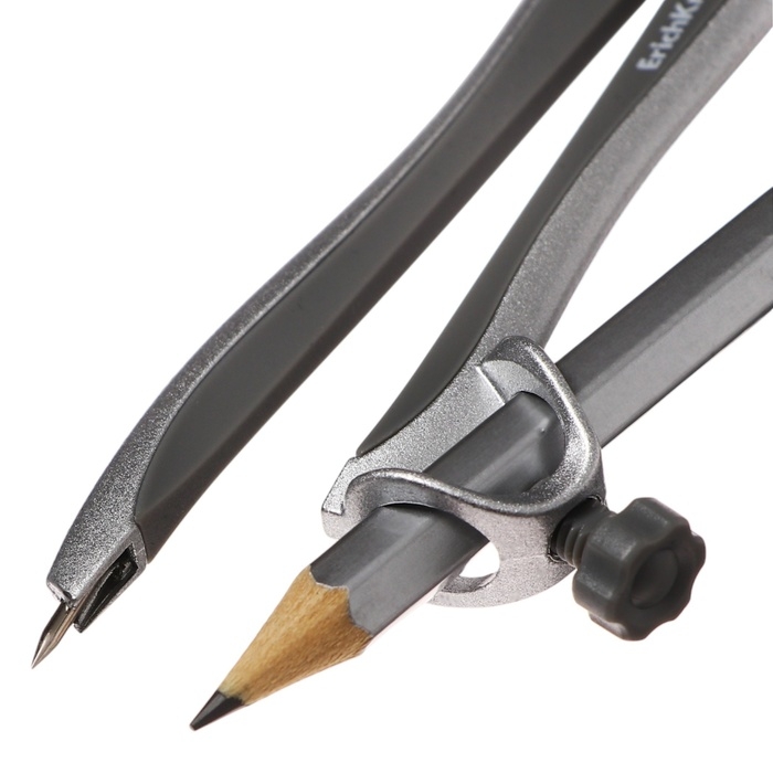 Циркуль металлический ErichKrause "Classic", 125мм, с карандашом, пенал, серый