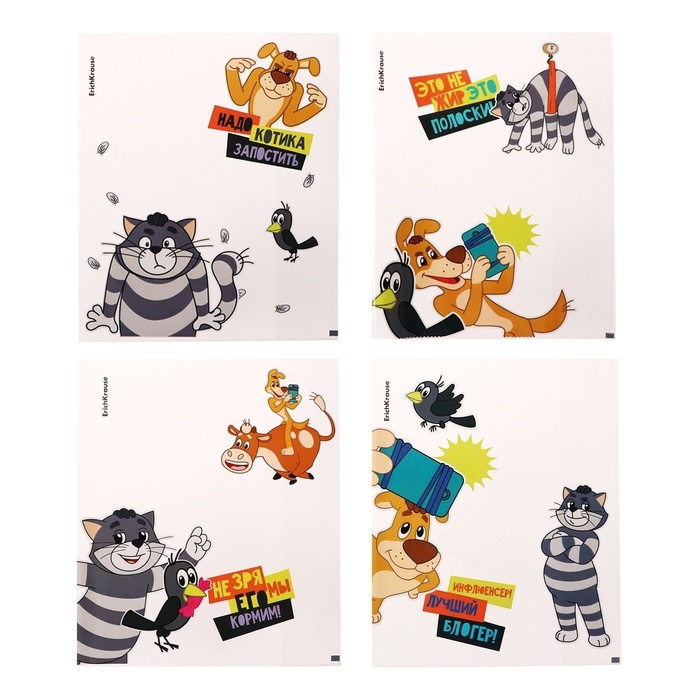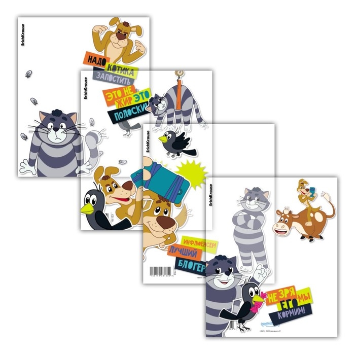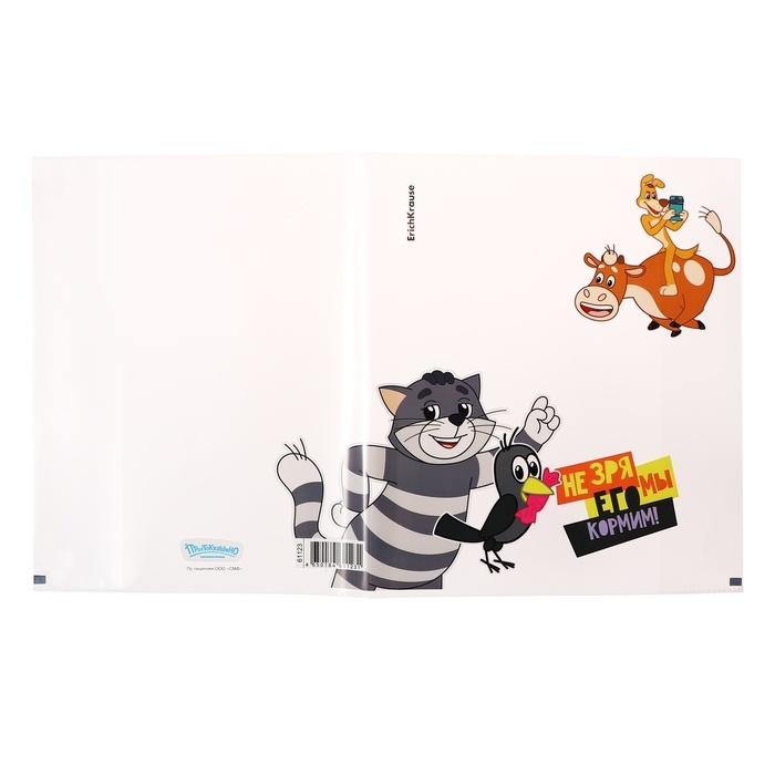 Набор обложек ПП 12 шт, 212 х 347 мм, 80 мкм, ErichKrause "Простоквашино", для тетрадей и дневников, фиксированная, прочные швы, микс