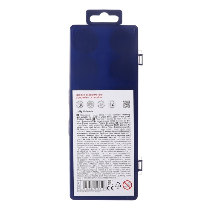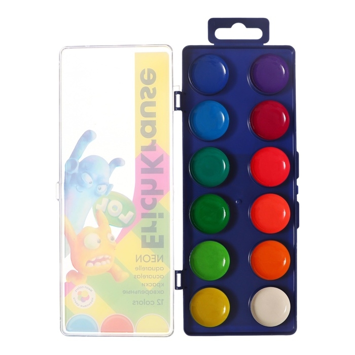 Акварель 12 цветов, ErichKrause Jolly Friends Neon, пластик, с европодвесом