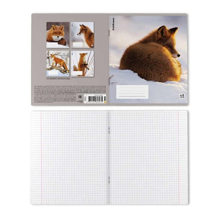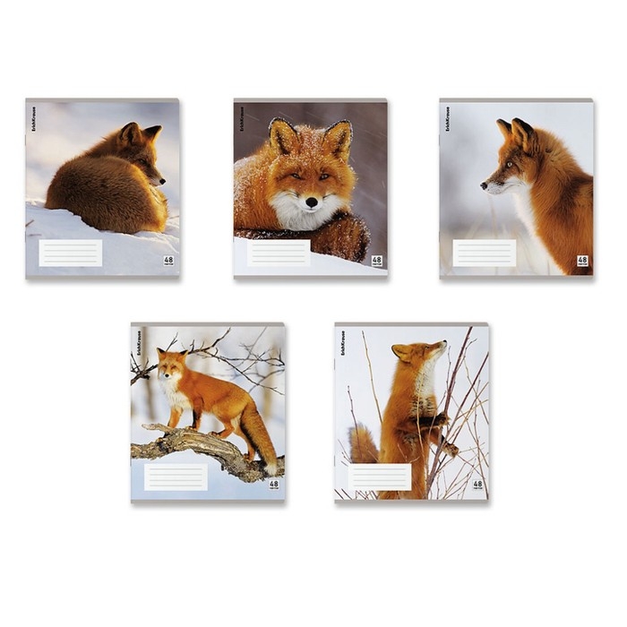 Тетрадь В5, 48 листов в клетку, ErichKrause "Лисы", пластиковая обложка, блок офсет 100% белизна, МИКС