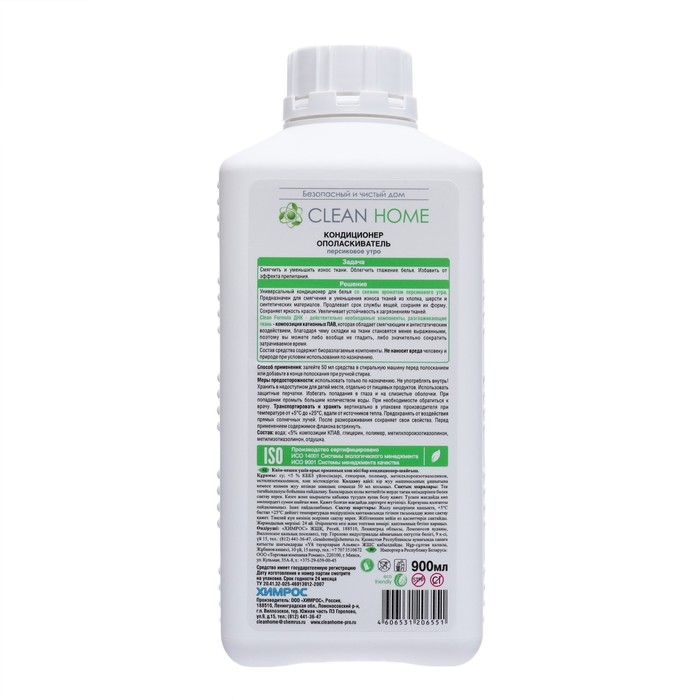 Кондиционер-опаласкиватель Clean home «Персиковое утро» - это универсальный кондиционер для белья предназначен для смягчения и уменьшения износа тканей, включая хлопок, шерсть и синтетические материалы. Он продлевает срок службы вещей, сохраняет их форму, а также яркость красок и увеличивает устойчивость к загрязнениям.