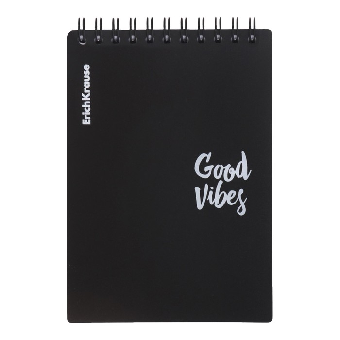Блокнот на спирали A6 80 листов, клетка, ErichKrause "Words" пластиковая обложка шелкография, блок офсет белизна 100%, черный