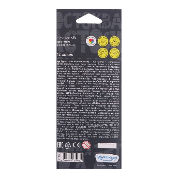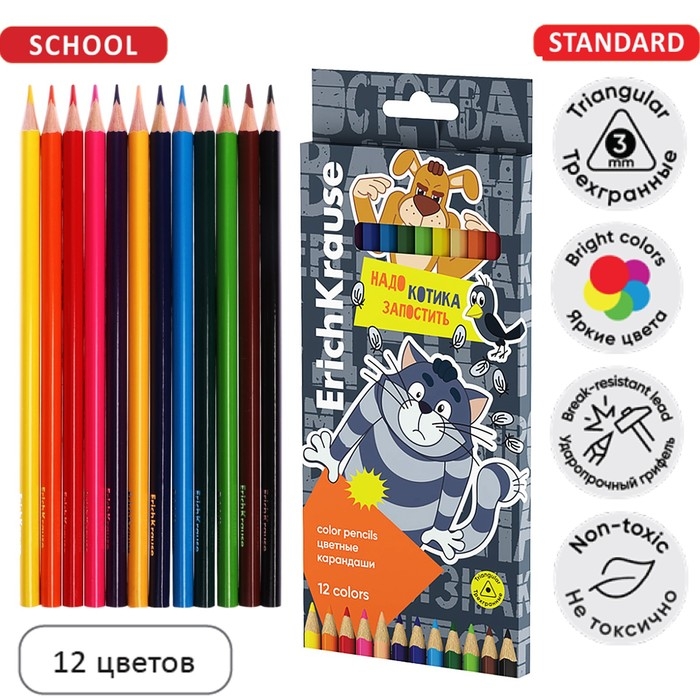 Карандаши 12 цветов ErichKrause "Простоквашино", дерево, трехгранные, европодвес