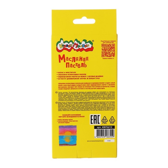 Масляная пастель "Каляка-Маляка" - отличный выбор для юных художников. Благодаря своему составу, они пишут ярко и мягко. Насыщенные цвета и большая палитра помогут воплотить в жизнь любую творческую задумку. Имеет индивидуальную упаковку, благодаря чему рука не скользит.