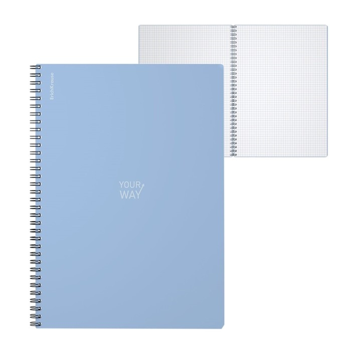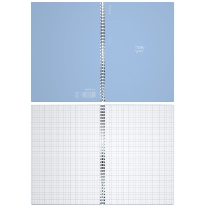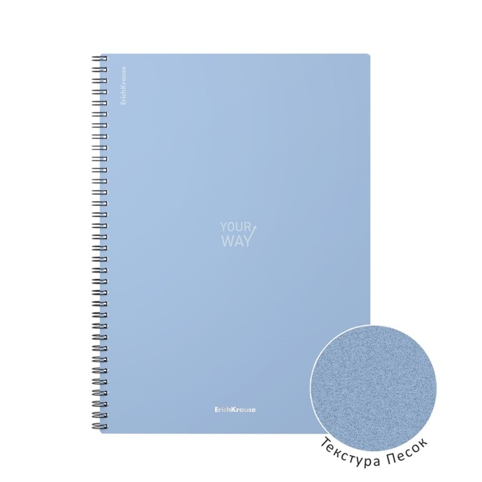 Тетрадь A4 на спирали, 80 листов в клетку, ErichKrause Symbol, пластиковая обложка, тиснение "песок", блок офсет 100% белизна, голубая