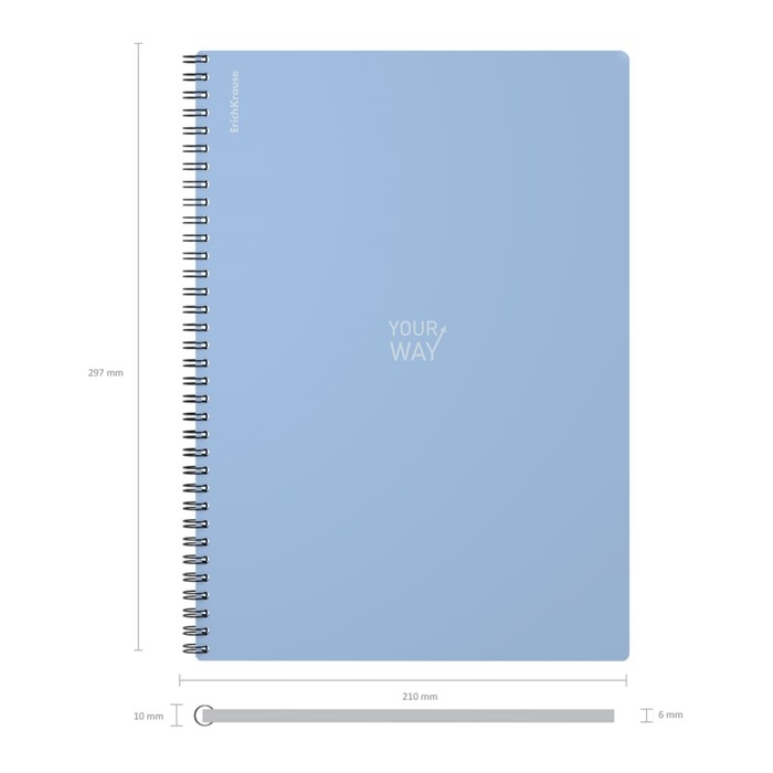 Тетрадь общая формата А4 (210х297 мм). Обложка из высококачественного износостойкого пластика с фактурой "песок". В блоке 80 листов в клетку. Бумага офсетная плотностью 60 г/м2. Цвет линовки - синий. Скругленные уголки обложки. Тип скрепления - спираль. Тетради упакованы в термоусадочную пленку по 2 штуки.