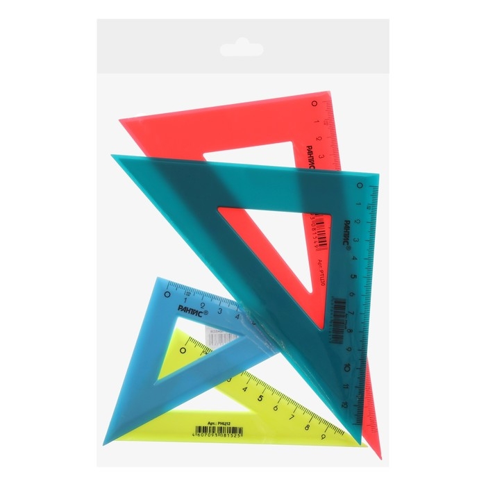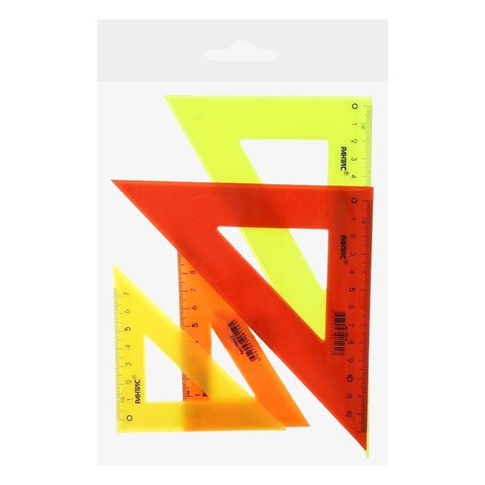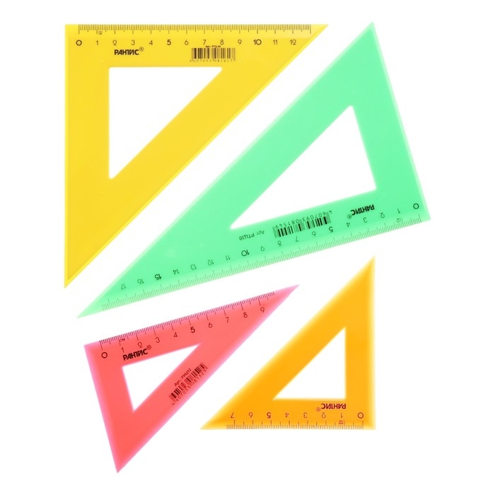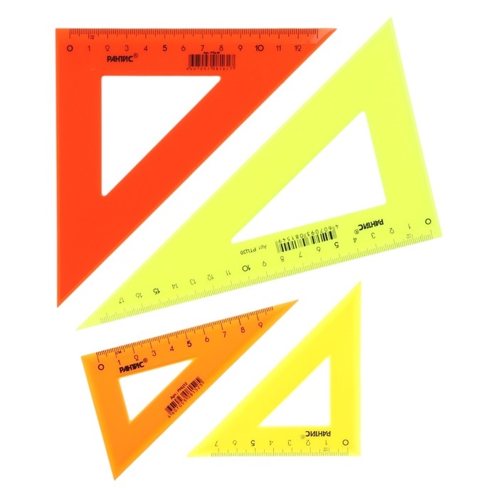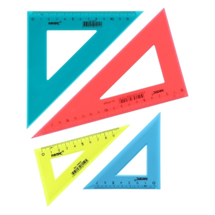 Набор треугольников Calligrata – незаменим для чертёжных и измерительных работ. Длина шкалы варьируется: 9/12/14/20 см. Треугольник имеет чёткую напечатанную миллиметровую шкалу и гладкую глянцевую поверхность. Представлен в цветах ассорти