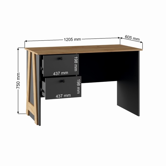 Стол письменный с ящиками Бетти, 1205х605х750, Графит/Крафт золотой