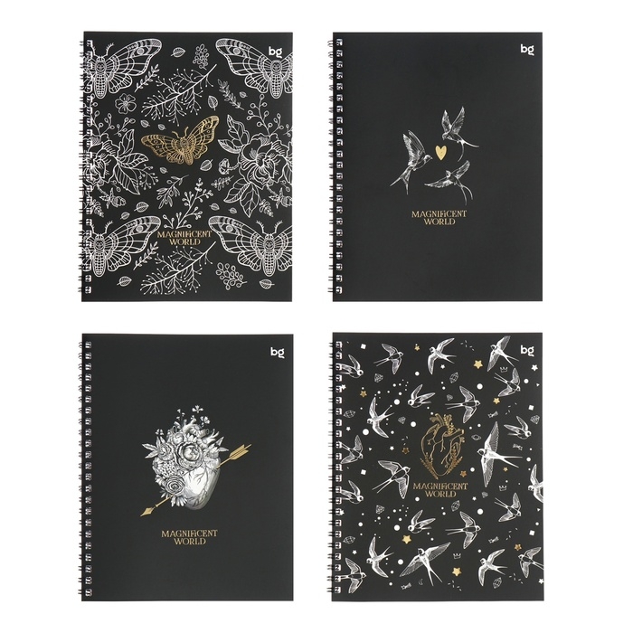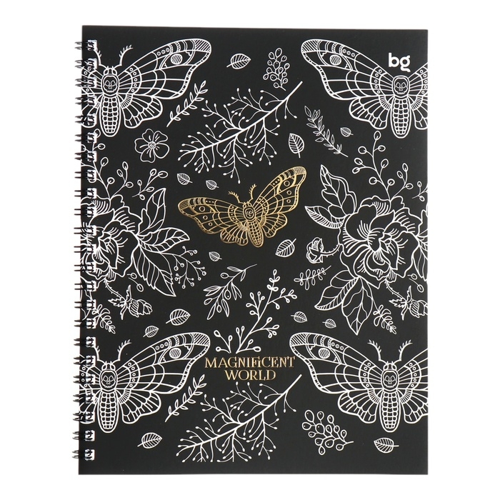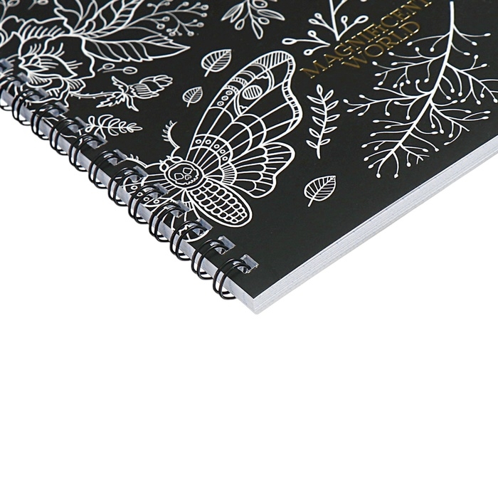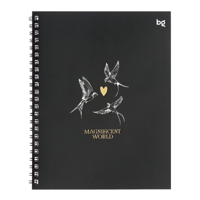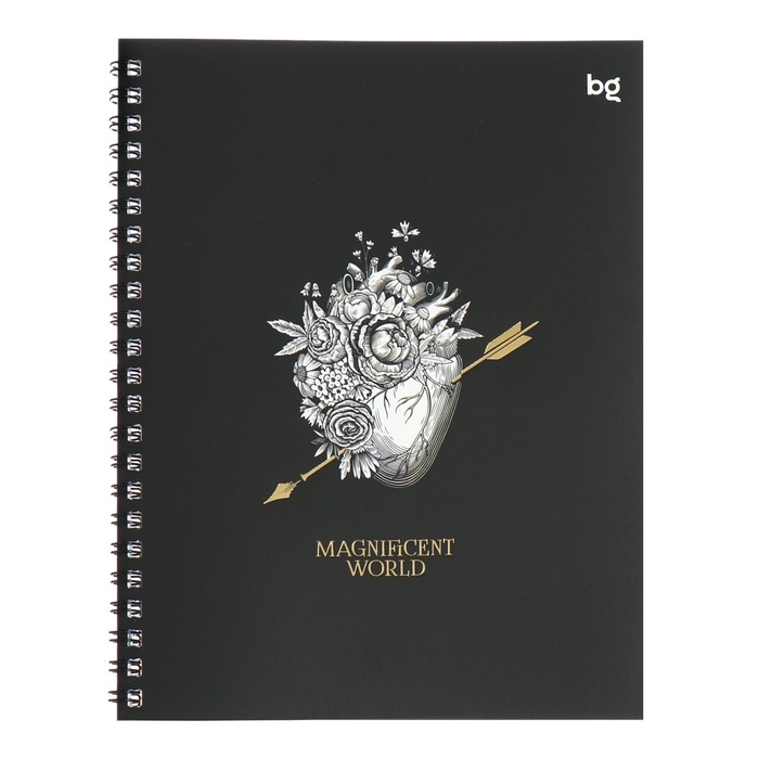 Тетрадь 48 листов, в клетку, на гребне, Magnificent World, обложка мелованный картон, матовая ламинация, тиснение фольгой, МИКС