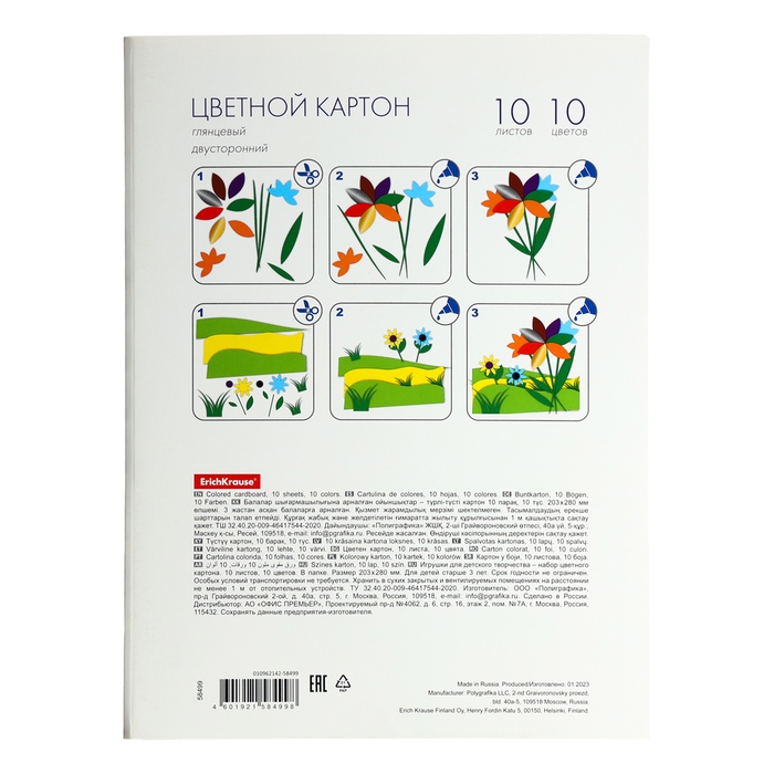 Картон цветной А4, 10 цветов, 10 листов, ErichKrause, мелованный двусторонний глянцевый, 170 г/м2, в папке, схема поделки