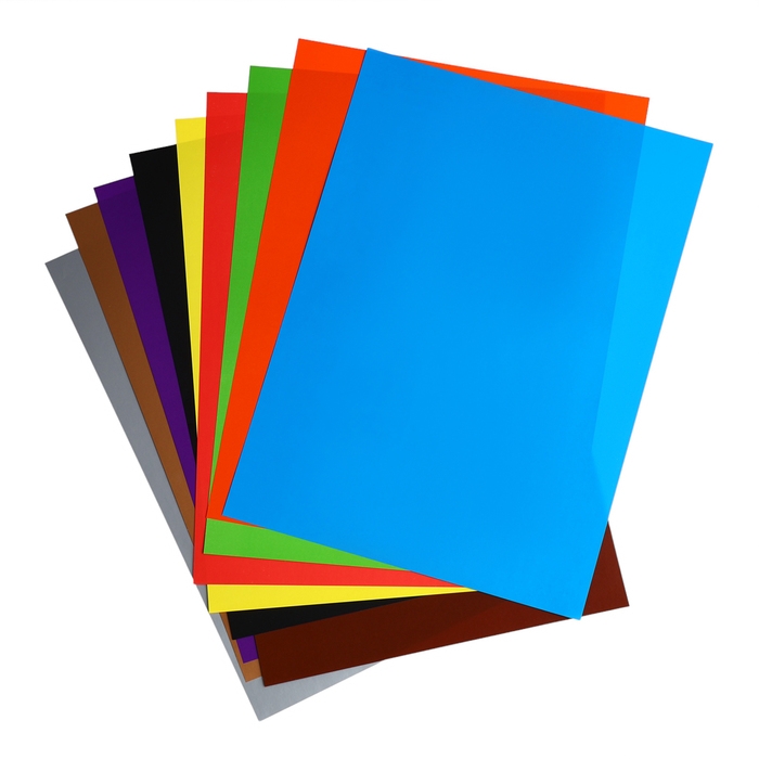 Цветной картон мелованный односторонний формата А4 (203х280 мм). Яркие насыщенные цвета. В папке 20 листов, 10 цветов. Плотность наполнения — 170 г/м2. Папка из плотного картона. Упакован в термоусадочную пленку по 5 штук