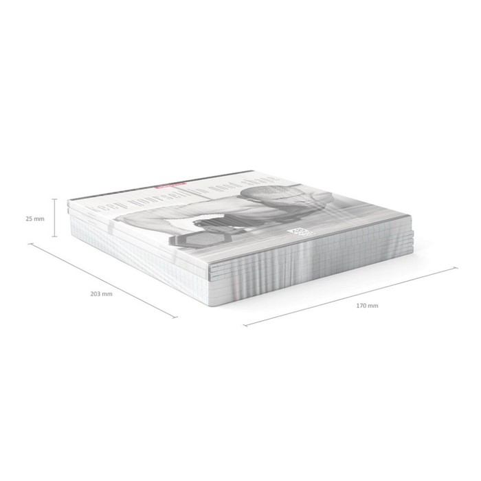 Тетрадь общая формата А5+ (170х203 мм). Обложка из высококачественного мелованного картона плотностью 190 г/м2. В блоке 48 листов в клетку с полями. Бумага офсетная плотностью 60 г/м2. Цвет линовки - синий. Скругленные уголки обложки и блока. Тип скрепления - скоба. Тетради одного цвета упакованы в термоусадочную пленку по 5 штук. Товар поставляется в нескольких вариантах цвета без возможности выбора.