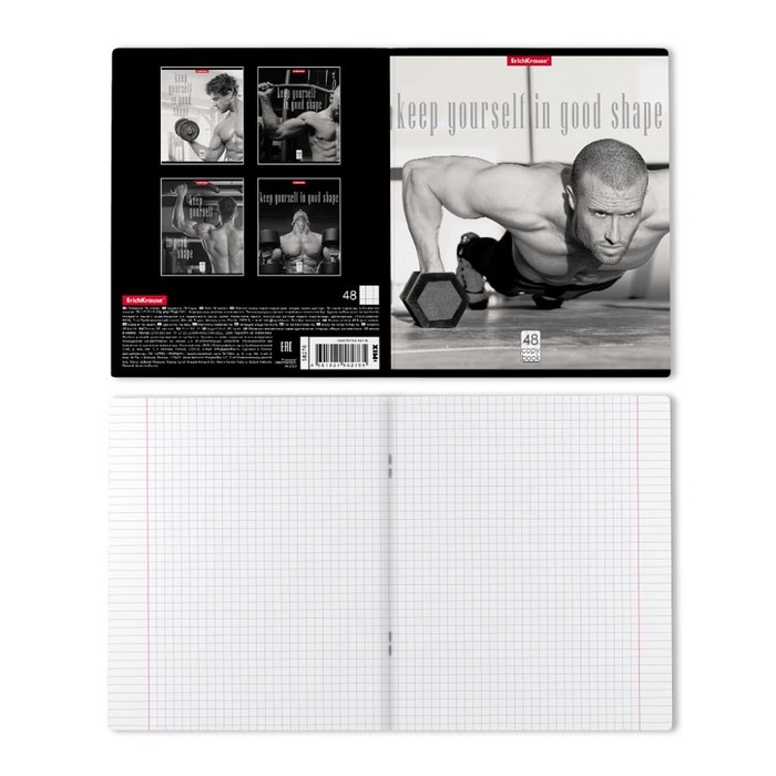 Тетрадь 48 листов в клетку, ErichKrause "Будь в форме", обложка мелованный картон, блок офсет 100% белизна, МИКС (1 вид в спайке)