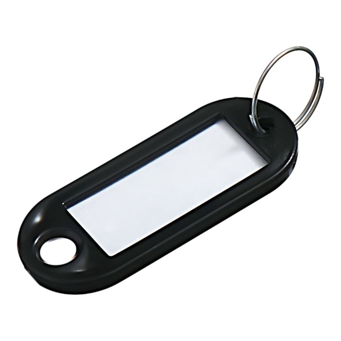 Брелоки для ключей с информационным окном и бумажной вставкой для пометок. Размер брелока 52 х 23 мм, размер окна 36 х 18мм – предназначен для нанесения маркировки. Защитная пленка размером 18 х 36 мм из прозрачного полиэтилена служит для предохранения бумажной вкладки. Материал - мягкий пластик. Упаковка по 50 штук, цвет - черный. Корпус изготовлен из гибкого пластика, что увеличивает срок службы брелока для ключей.