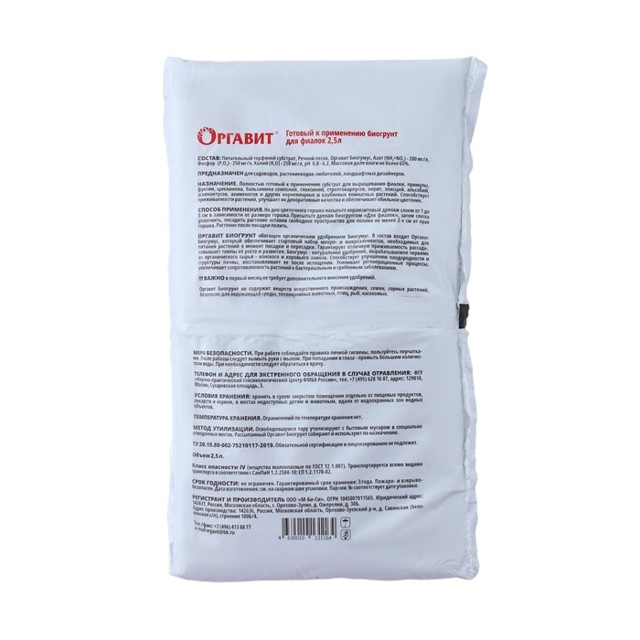Биогрунт на основе Биогумуса "Для фиалок", 2,5 л