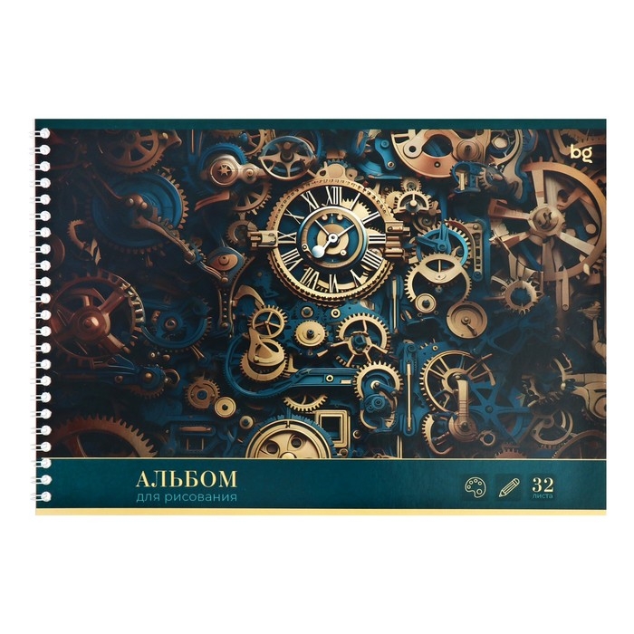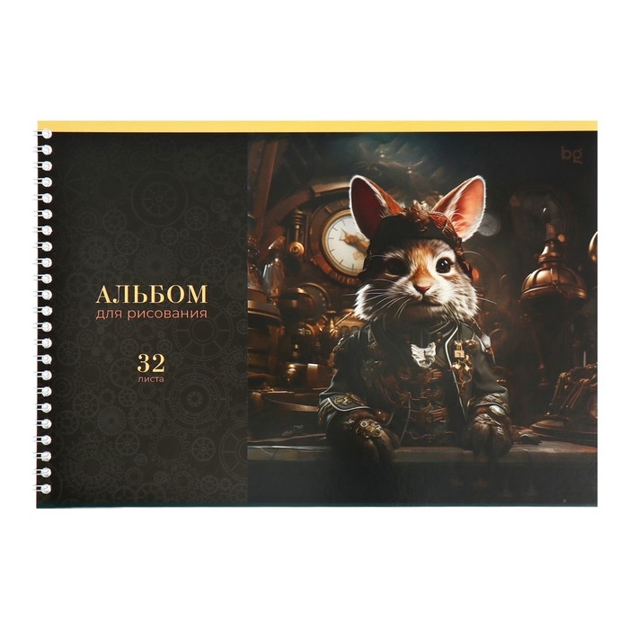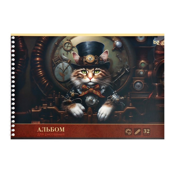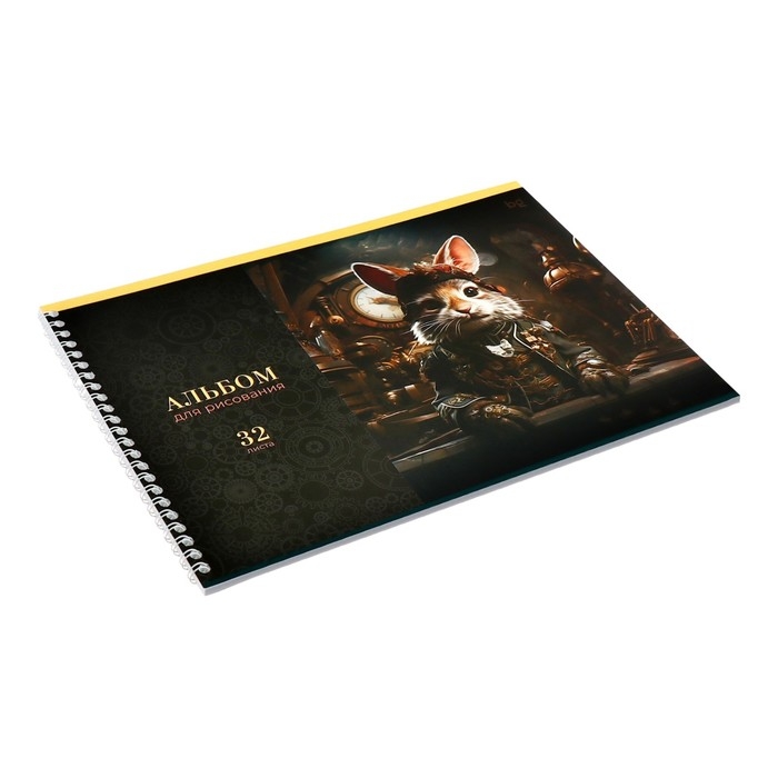 Альбом для рисования А4, 32 листа на гребне "Стимпанк", обложка мелованный картон, выборочный лак, 100г/м2, МИКС