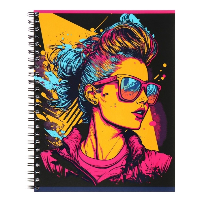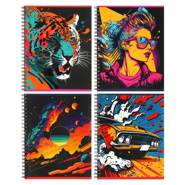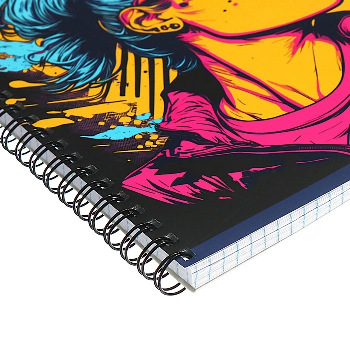 Тетрадь 80 листов в клетку на гребень "Графические плакаты", обложка мелованный картон, матовая ламинация, выборочный лак, МИКС
