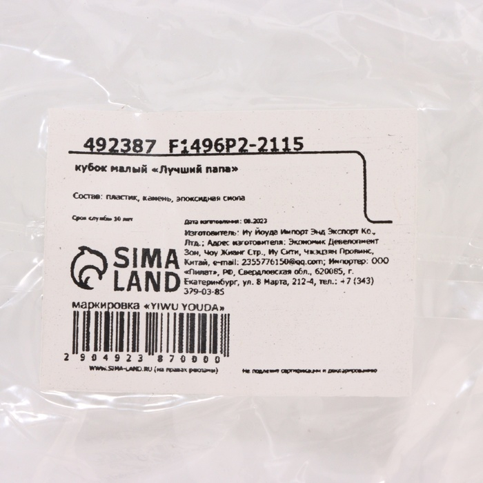Кубок «Лучший папа», наградная фигура, пластик, золото, 13 х 8 х 5 см.