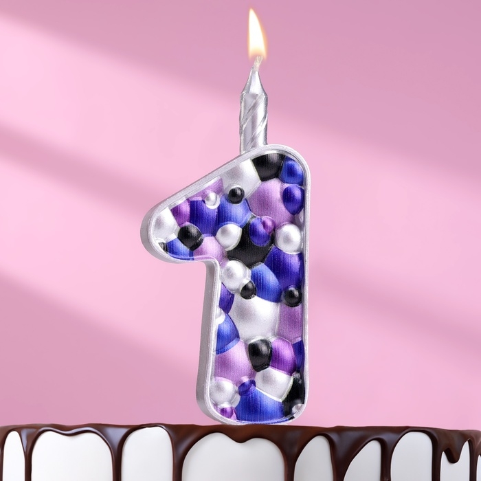 Свеча для торта "Пузырьки", цифра "1", 10 см, серебро