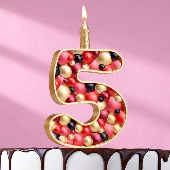 Свеча для торта "Пузырьки", цифра "5", 10 см, золото