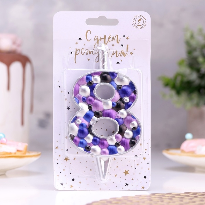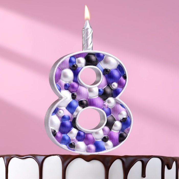 Свеча для торта "Пузырьки", цифра "8", 10 см, серебро
