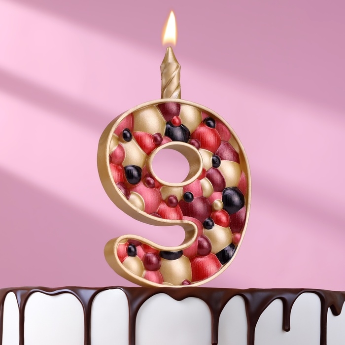 Свеча для торта "Пузырьки", цифра "9", 10 см, золото