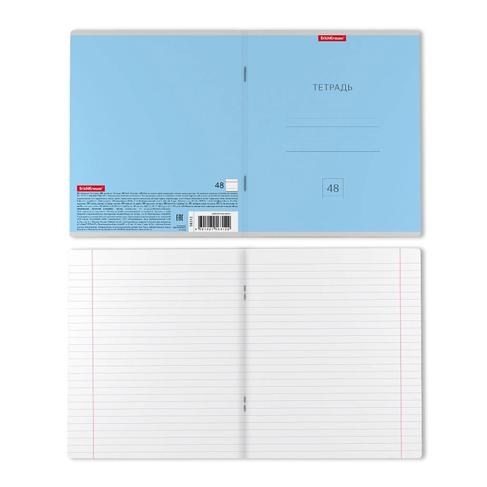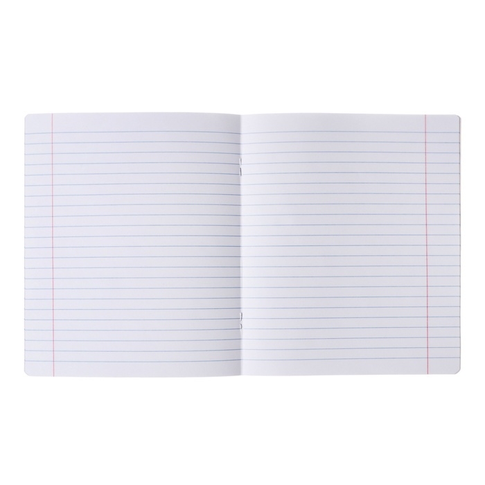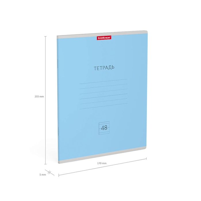 Тетрадь общая формата А5+ (170х203 мм). Обложка из высококачественного мелованного картона плотностью 190 г/м2. В блоке 48 листов в линейку с полями. Бумага офсетная плотностью 60 г/м2. Цвет линовки - синий. Скругленные уголки обложки и блока. Тип скрепления - скоба. Тетради разных цветов упакованы в термоусадочную пленку по 5 штук.