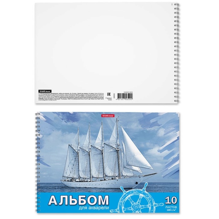 Альбом для акварели А4, 10 листов на спирали, Erich Krause "Морская прогулка", блок 180 г/м², экстра белая, перфорация для отрыва, твёрдая подложка