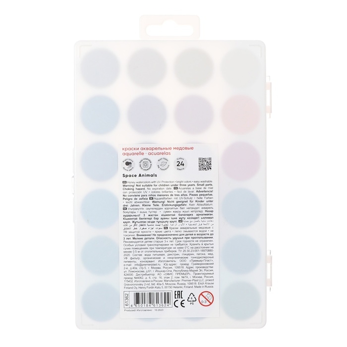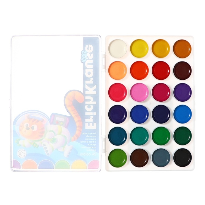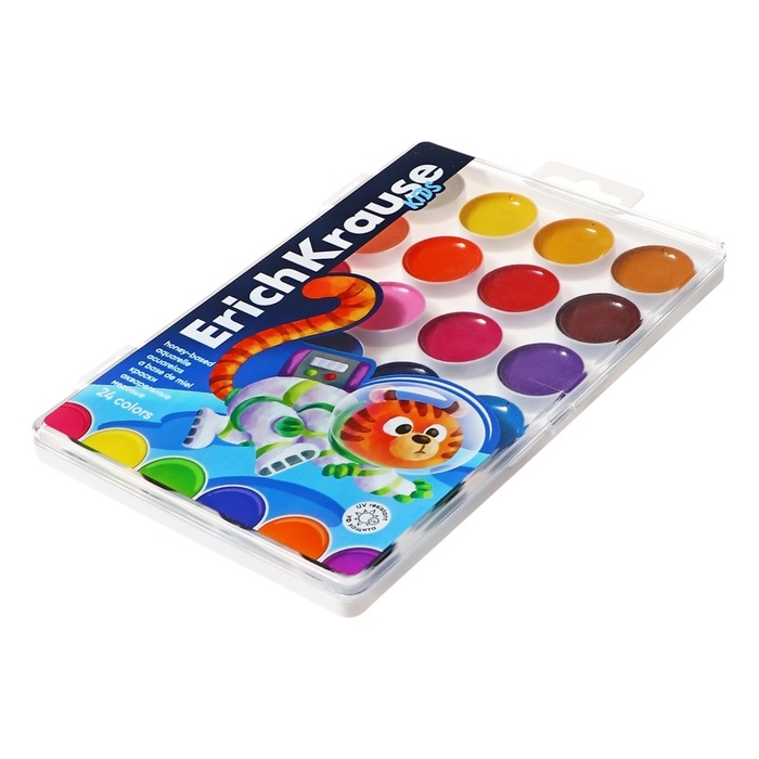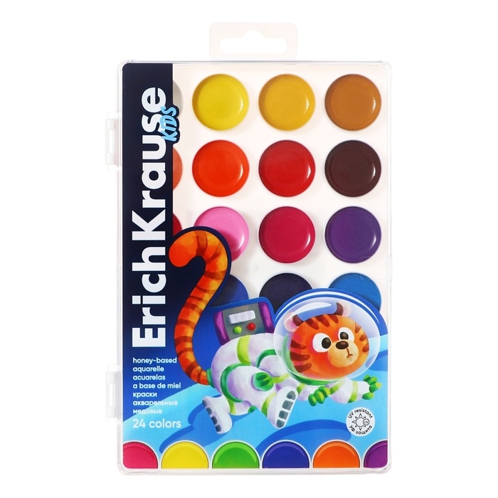 Акварель 24 цвета ErichKrause "Jolly Friends", медовые, УФ-фильтр, матовые насыщенные цвета, пластиковая коробка с европодвесом