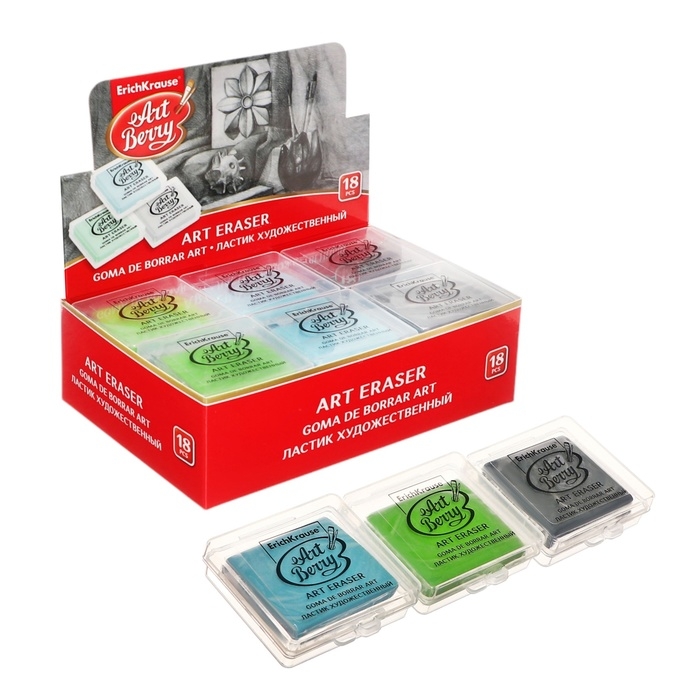 Ластик клячка художественный ErichKrause, ArtBerry, в пластиковом футляре, микс
