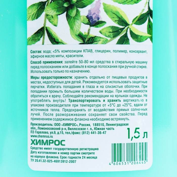 Кондиционер-ополаскиватель для белья Чистый дом "Мята", 1500 мл
