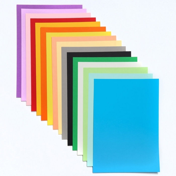 Картон цветной А4 тонированный, 34 листа, 20 цветов (обычный, пастель, неон) 180 г/м