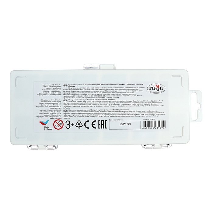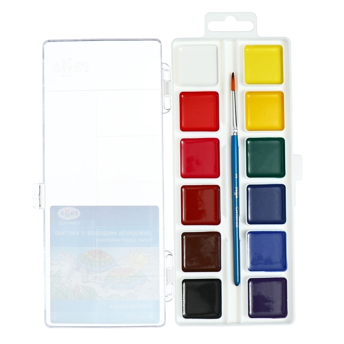Медовая полусухая акварель серии "Классическая" разработана для использования в школе и дома. Естественные цвета акварели обучают правильному цветовосприятию окружающего мира. Краски изготовлены на основе органических пигментов и натурального связующего. Прозрачность красок, яркость и чистота цвета, разносимость и размываемость - основные характеристики акварели данной серии.Кюветы с высокими бортиками и увеличенным расстоянием между красками предназначены для удобства в работе детей. Палитра для смешивания красок расположена на крышке. Акварель легко смывается с рук и отстирывается с одежды.