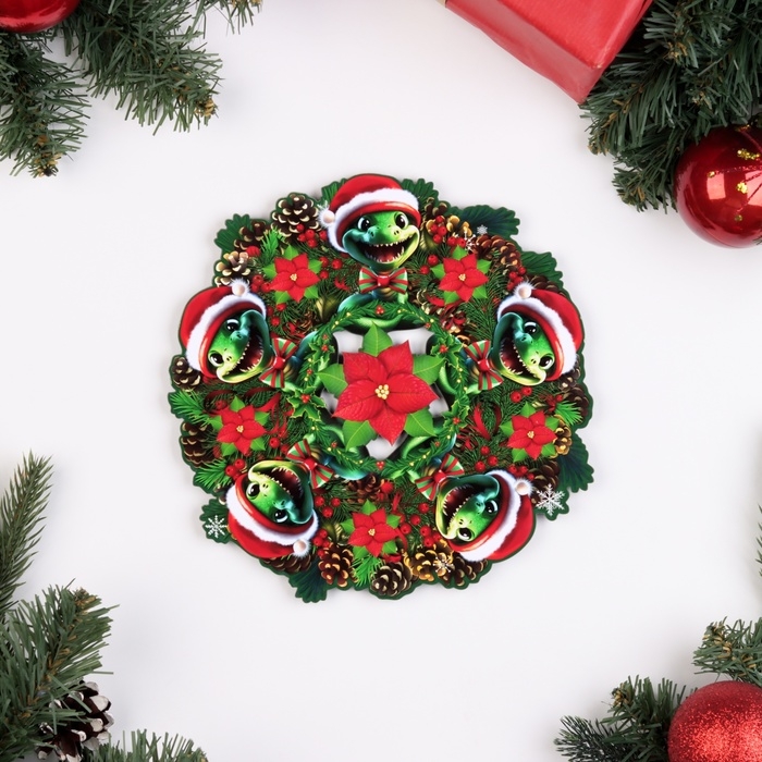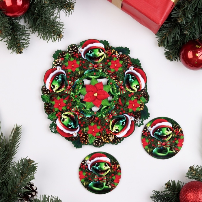 Новый год. Набор "Веселая змейка", подставка под горячее и 2 подстаканника, D-20,5 см