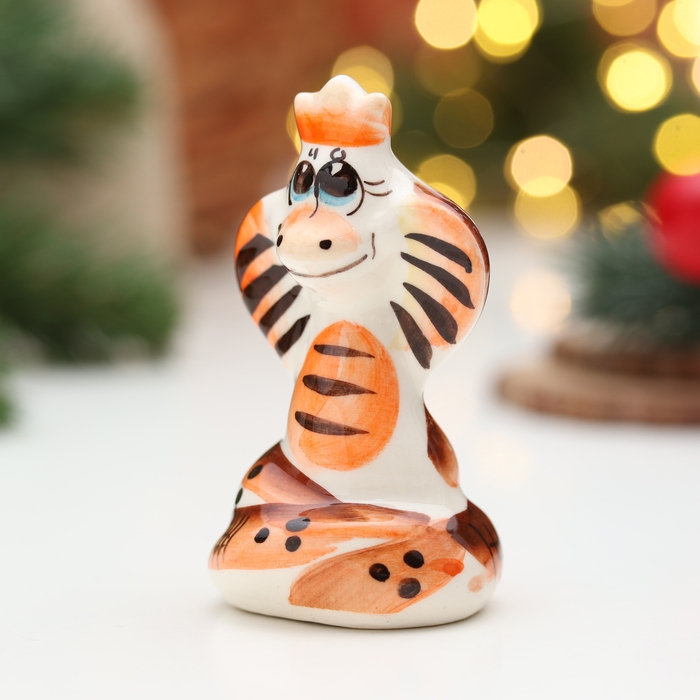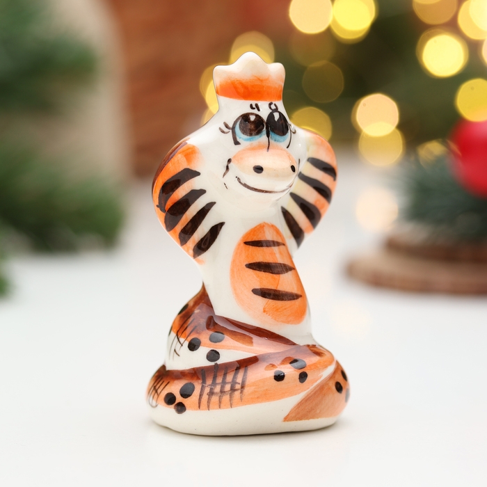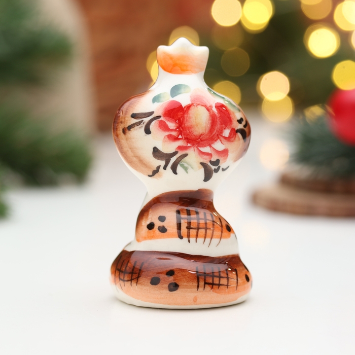 Новый год. Сувенир символ года "Змея Королева", гжель, цвет, 8 см