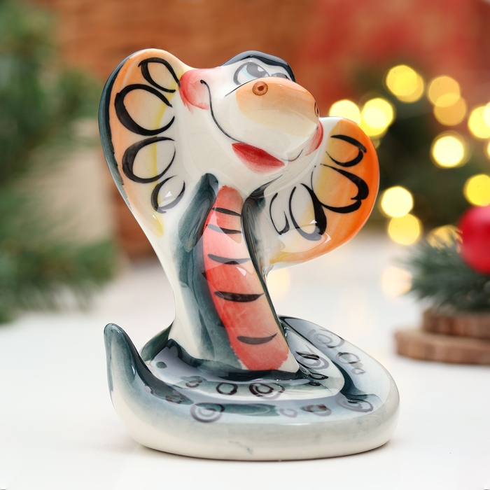 Новый год. Сувенир символ года "Змея Клава", гжель, цвет, 11 см
