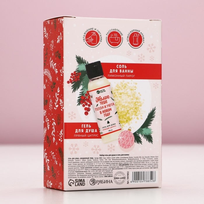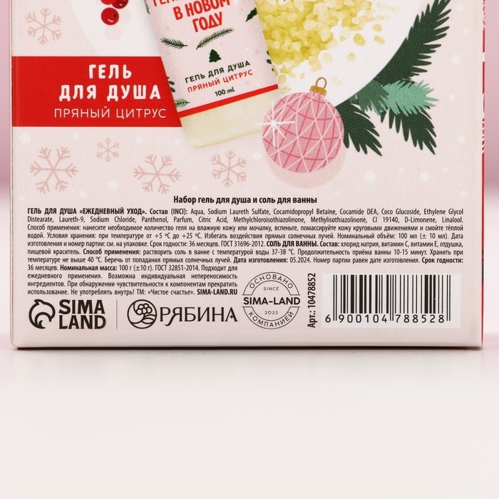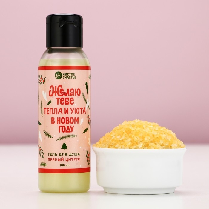 Подарочный набор косметики «С Новым Годом», гель для душа 100 мл и соль для ванны 100 г, аромат пряного цитруса, ЧИСТОЕ СЧАСТЬЕ
