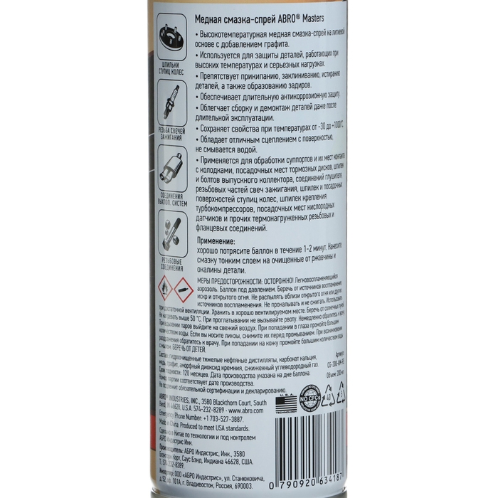 Смазка-спрей медная ABRO MASTERS, 200 мл