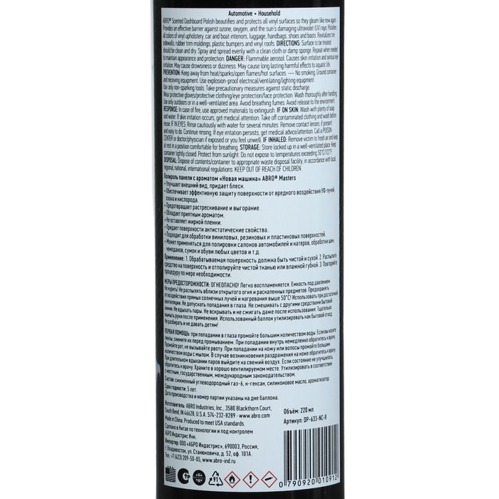 Полироль панели ABRO MASTERS, новая машина, 220 мл