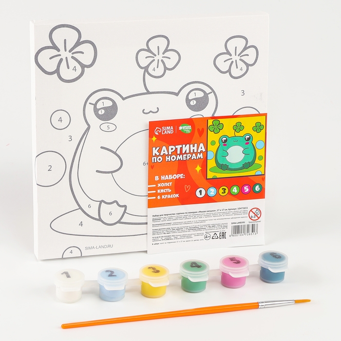 Картина по номерам на холсте с подрамником для детей «Милая лягушка», 17 х 17 см