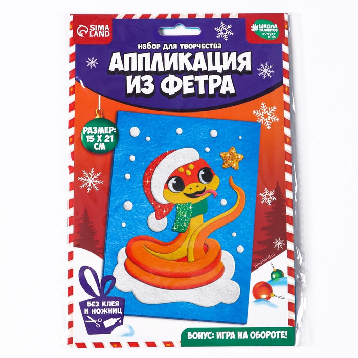 Аппликация из фетра на новый год «Веселая Змея», новогодний набор для творчества